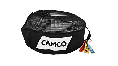 The Camco 53097 RV Equipment Storage Bag provides organized, compact storage for your essential RV utilities including fresh water hoses, gray water hoses, sewer hoses, and electrical cords. This versatile storage solution helps keep your RV equipment clean, protected, and properly identified to prevent cross-contamination between fresh water and sanitation systems.