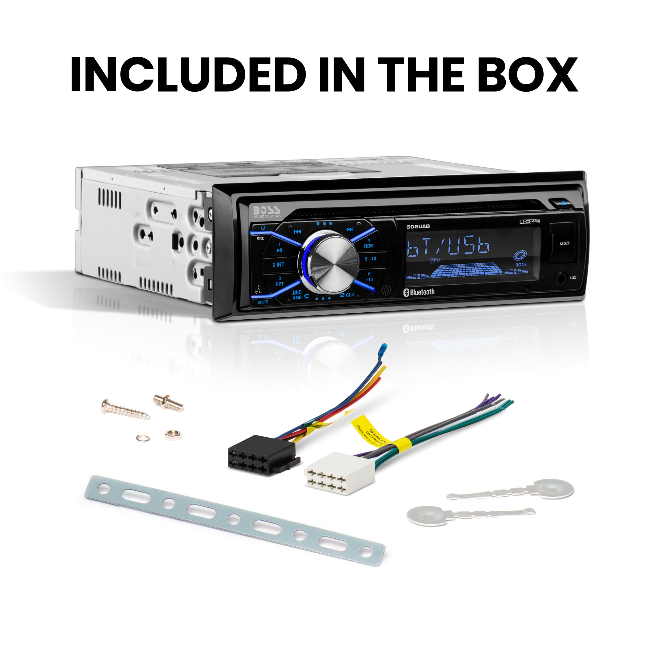 The Boss Audio Systems 508UAB is a feature-packed single DIN car stereo that delivers versatile entertainment options for your vehicle. This head unit combines classic CD playback with modern Bluetooth connectivity, allowing you to stream music wirelessly and take hands-free calls through the built-in microphone.