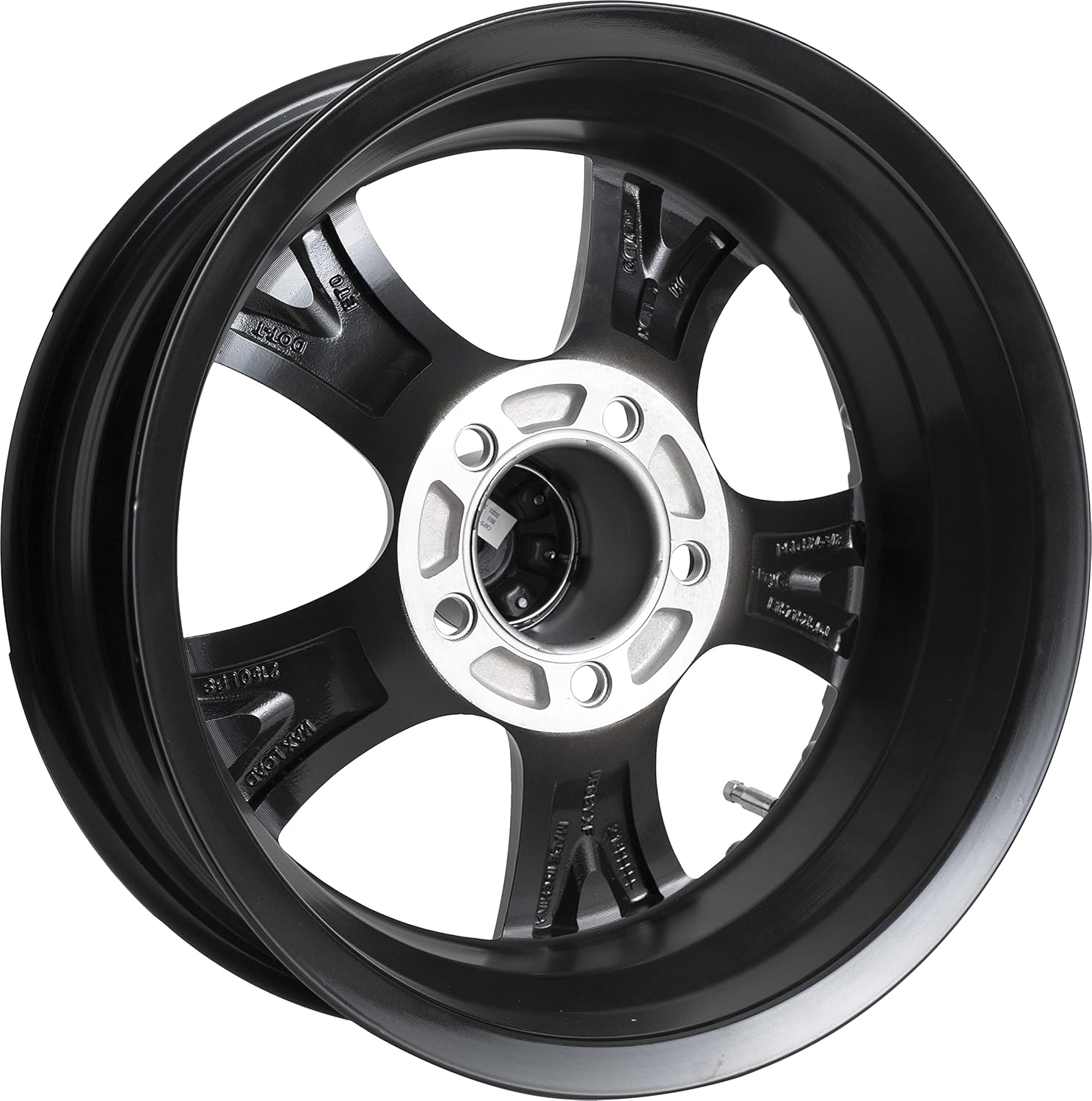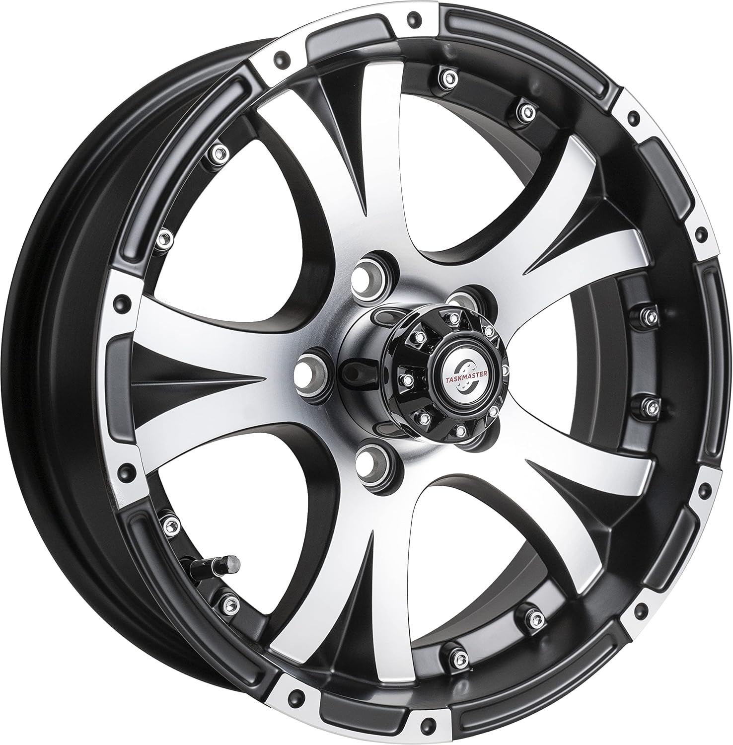 The Taskmaster AX02550545BMFL Viking Series trailer wheel combines premium aluminum construction with eye-catching aesthetics to deliver a high-performance upgrade for your trailer. This 15-inch diameter by 5-inch width wheel features a distinctive 5-spoke design with a black painted finish and machined natural face that creates striking contrast and visual appeal.