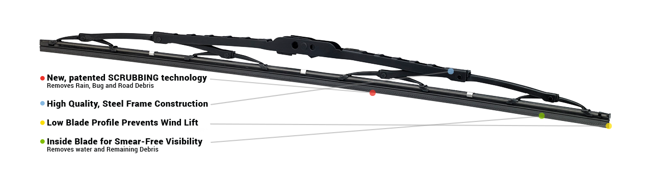 The Scrubblade SB2200 is a premium all-season windshield wiper blade engineered for exceptional performance and durability. This 22-inch wiper blade features a robust steel frame construction with reinforced rivets that provide superior strength and longevity even in harsh weather conditions.