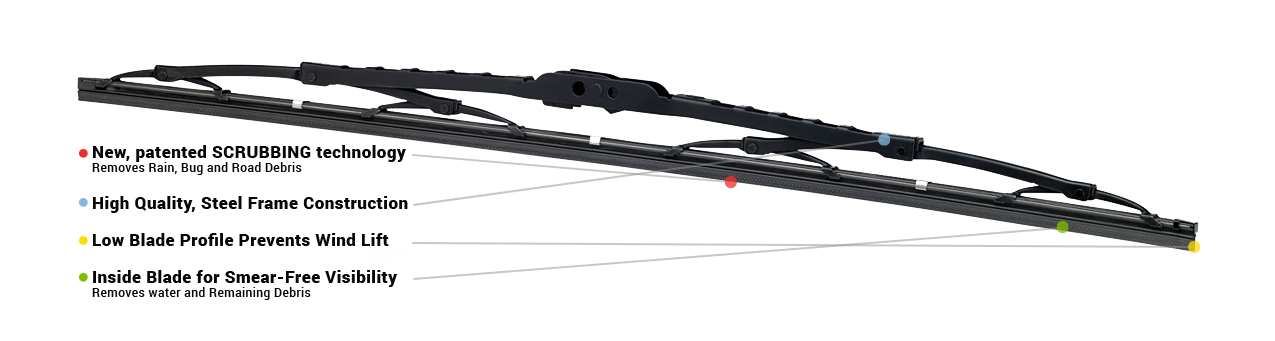 The Heavy Duty Distinguished by its robust steel frame, reinforced rivets, and graphite-coated blades, it delivers silent, seamless wipes and ensures exceptional durability.