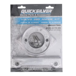 The Quicksilver 8M6007995 is a complete aluminum anode replacement kit engineered specifically for Volvo 280 sterndrive applications. This comprehensive kit provides superior protection against galvanic corrosion in both freshwater and saltwater environments, helping to preserve your sterndrive's underwater metal components and extend the life of your investment.