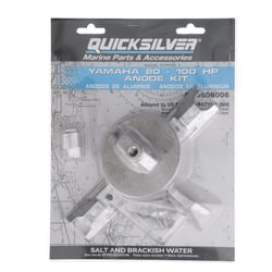 The Quicksilver 8M6008006 aluminum anode kit provides comprehensive corrosion protection for Yamaha 80-100hp outboard motors. This complete replacement kit includes all necessary anodes, stainless steel mounting hardware, and detailed installation instructions for straightforward maintenance.