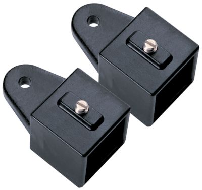 The Seachoice 50-76341 External Eye Ends are designed to fit over 1-inch outside diameter (OD) square tubing, providing secure mounting points for bimini tops, T-tops, boat canopies, and other marine framework applications. These black powder-coated stainless steel fittings slide over the outside of square tubing and are secured in place with fasteners.