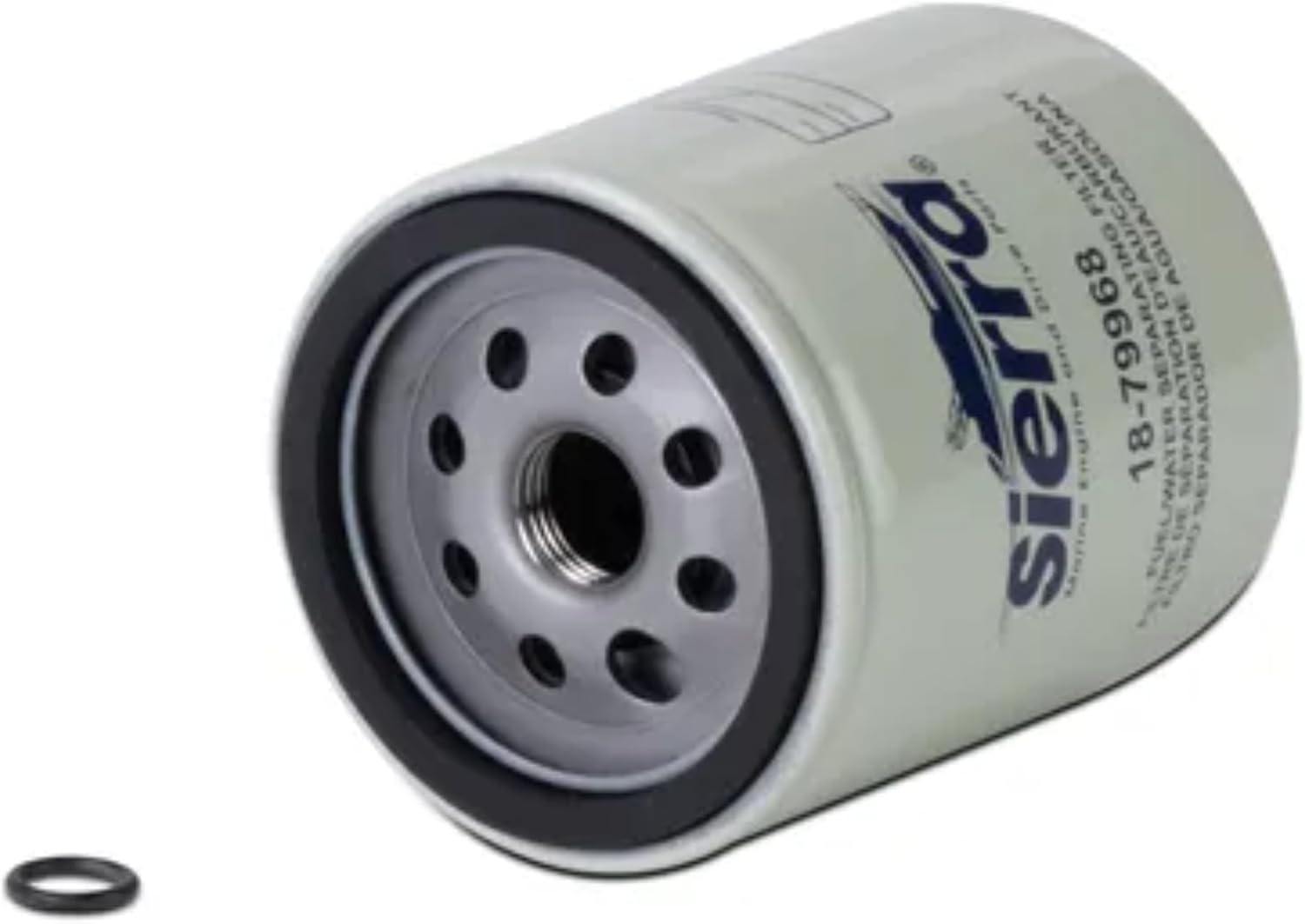 The Sierra 18-79968 is a high-performance water separating fuel filter designed specifically for Mercury 200/300 HP 6-cylinder Verado outboard engines with serial numbers 2B144123 and above (Generation V). This premium replacement filter provides critical protection for sensitive fuel injection systems in modern marine engines.