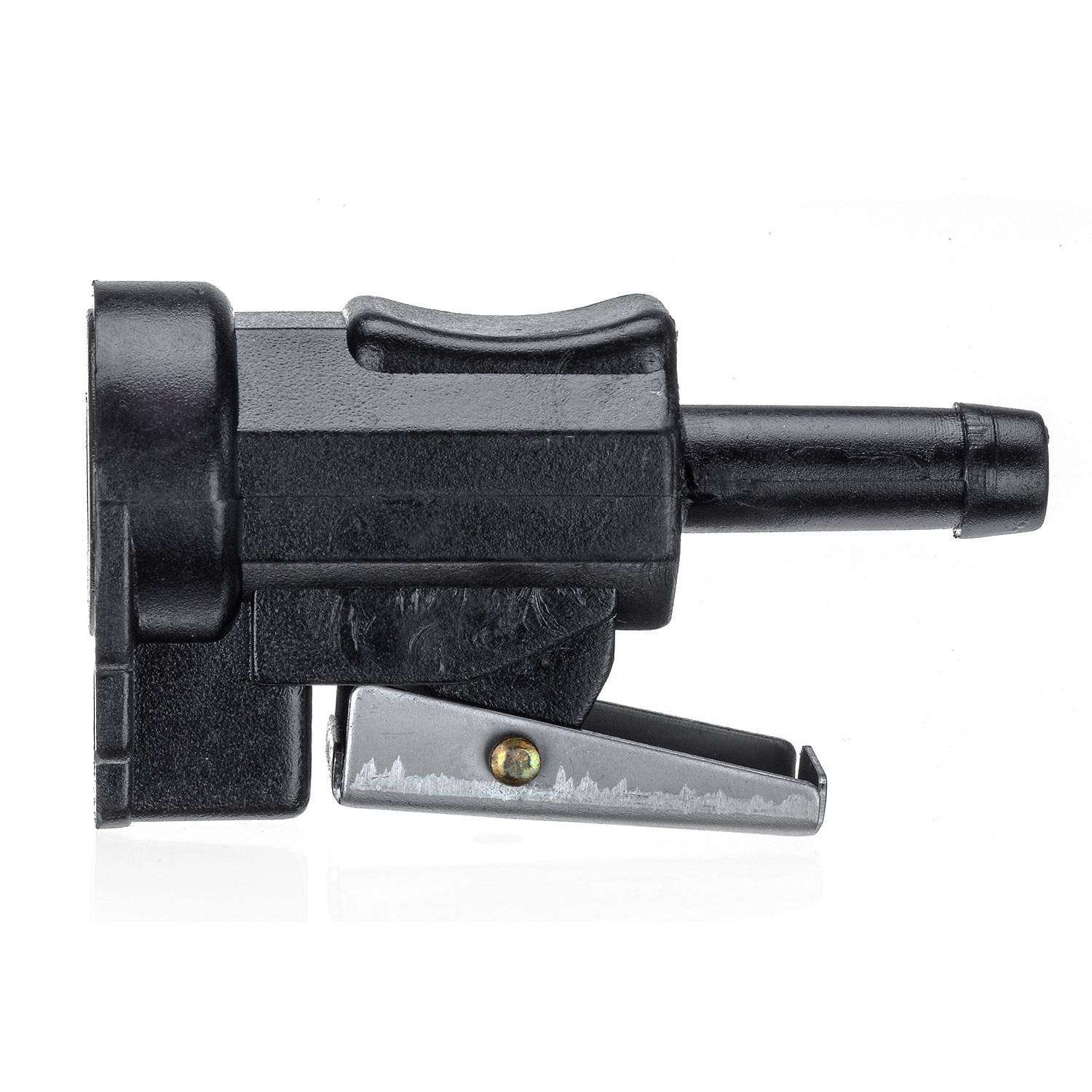 The Quicksilver 14213Q Quick Disconnect Fuel Line Fitting provides a reliable connection between your portable fuel tank and Mercury, Mariner, or Force outboard engines. This essential marine fuel system component features a clip-on style quick disconnect design that attaches at the engine end of the fuel line.