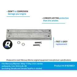 The Quicksilver 818298Q1 is a high-quality sacrificial aluminum anode designed to protect your Mercury or Mariner outboard engine from the damaging effects of galvanic corrosion. This essential component secures directly to the bottom of your power trim pump assembly, providing reliable protection in both saltwater and freshwater environments.