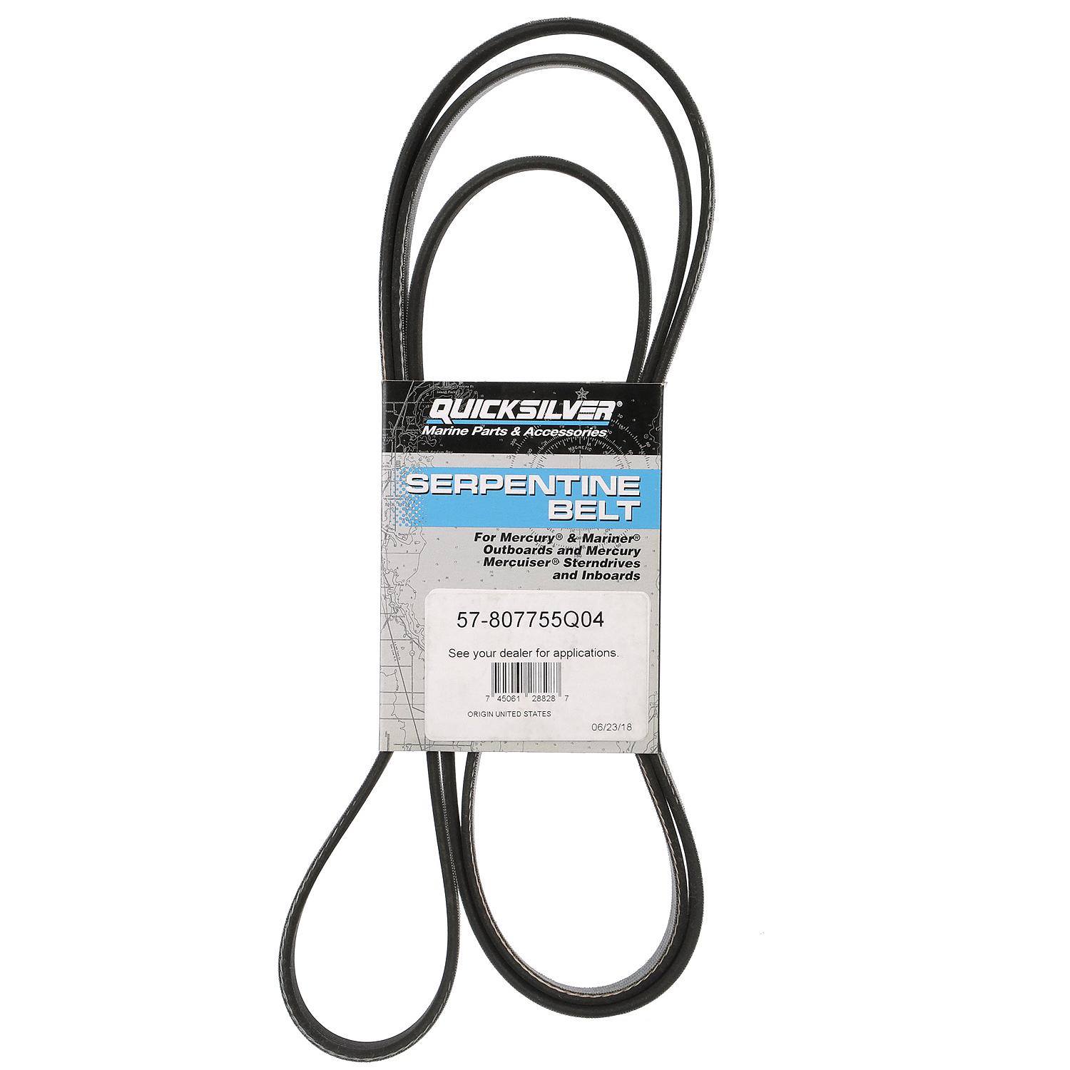 Replacing worn serpentine belts is critical preventive maintenance that ensures reliable operation of essential engine accessories. Quicksilver belts are constructed with marine-grade materials designed to withstand the harsh conditions of saltwater, extreme temperatures, and constant exposure to moisture. Consult your owner's manual or service manual to verify application compatibility for your specific engine model.