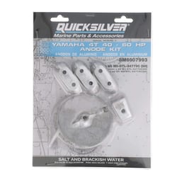 The Quicksilver 8M6007993 aluminum anode kit provides complete galvanic corrosion protection for Yamaha 40-60hp 4-stroke outboard motors. This comprehensive replacement kit includes all necessary anodes, stainless steel mounting hardware, and detailed installation instructions for straightforward maintenance.