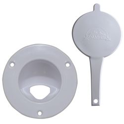 The Scandvik 10029P is a white replacement cup and cap assembly designed specifically for Scandvik's vertically mounted recessed shower systems (Part Number 1075). This complete replacement kit includes one cap (#10030) and one cup (#10031), providing everything needed to restore or maintain your recessed shower installation.