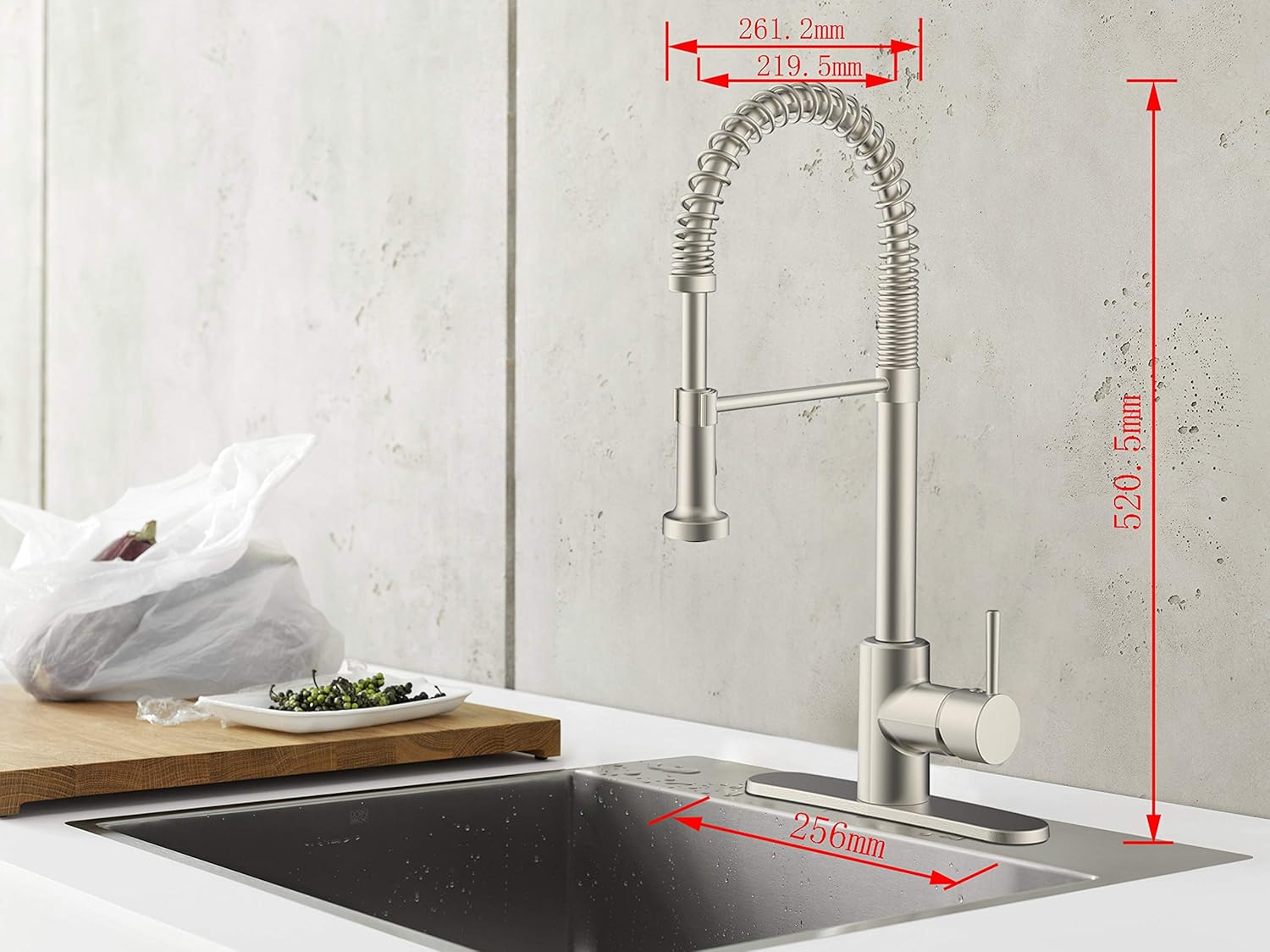 Installation instructions and hardware are included with the faucet, including hot and cold water hoses and standard accessories. The faucet requires a single hole or an 8-inch mounting width with the deck plate cover. Perfect for RV and manufactured home kitchens where space efficiency and functionality are essential.