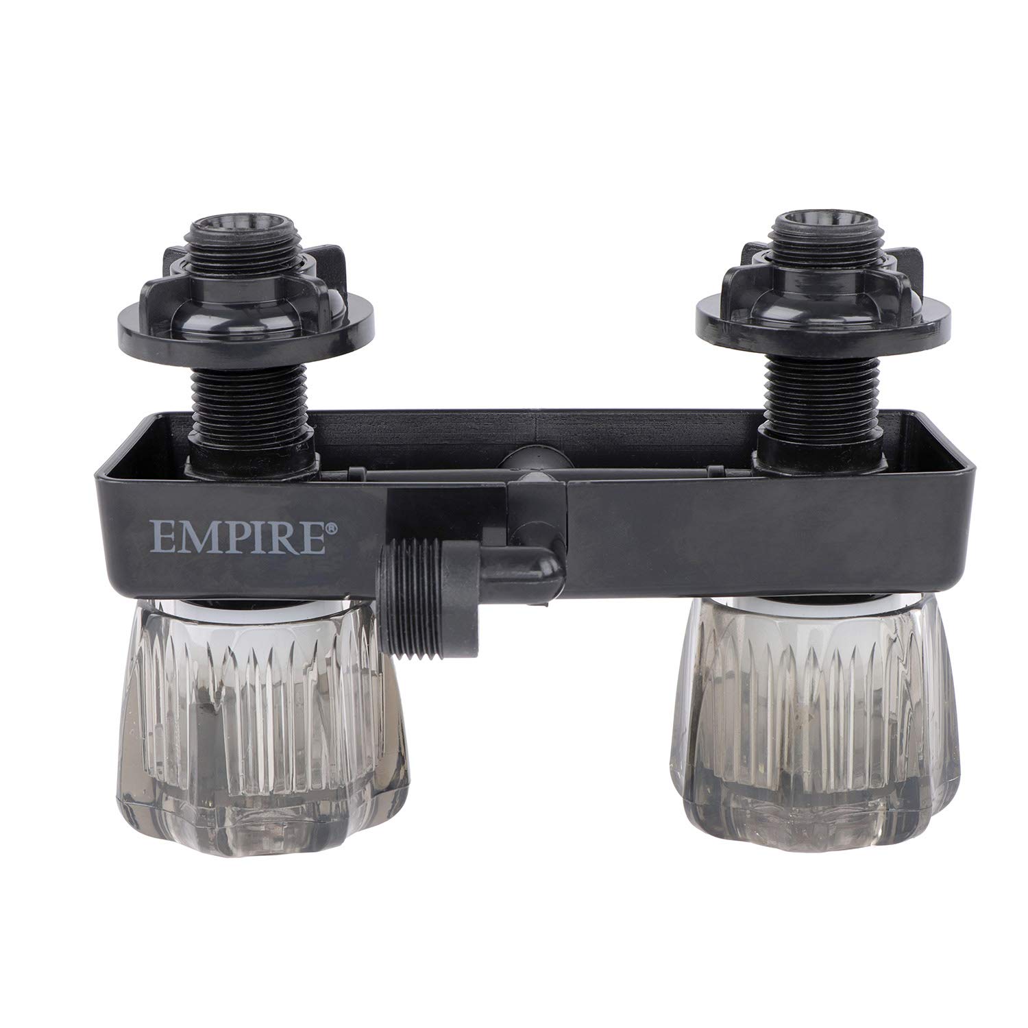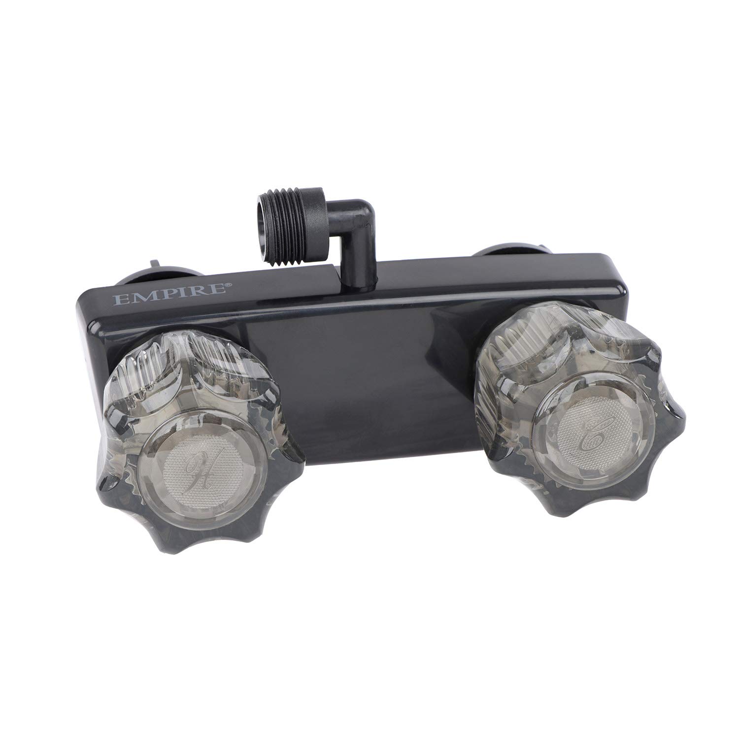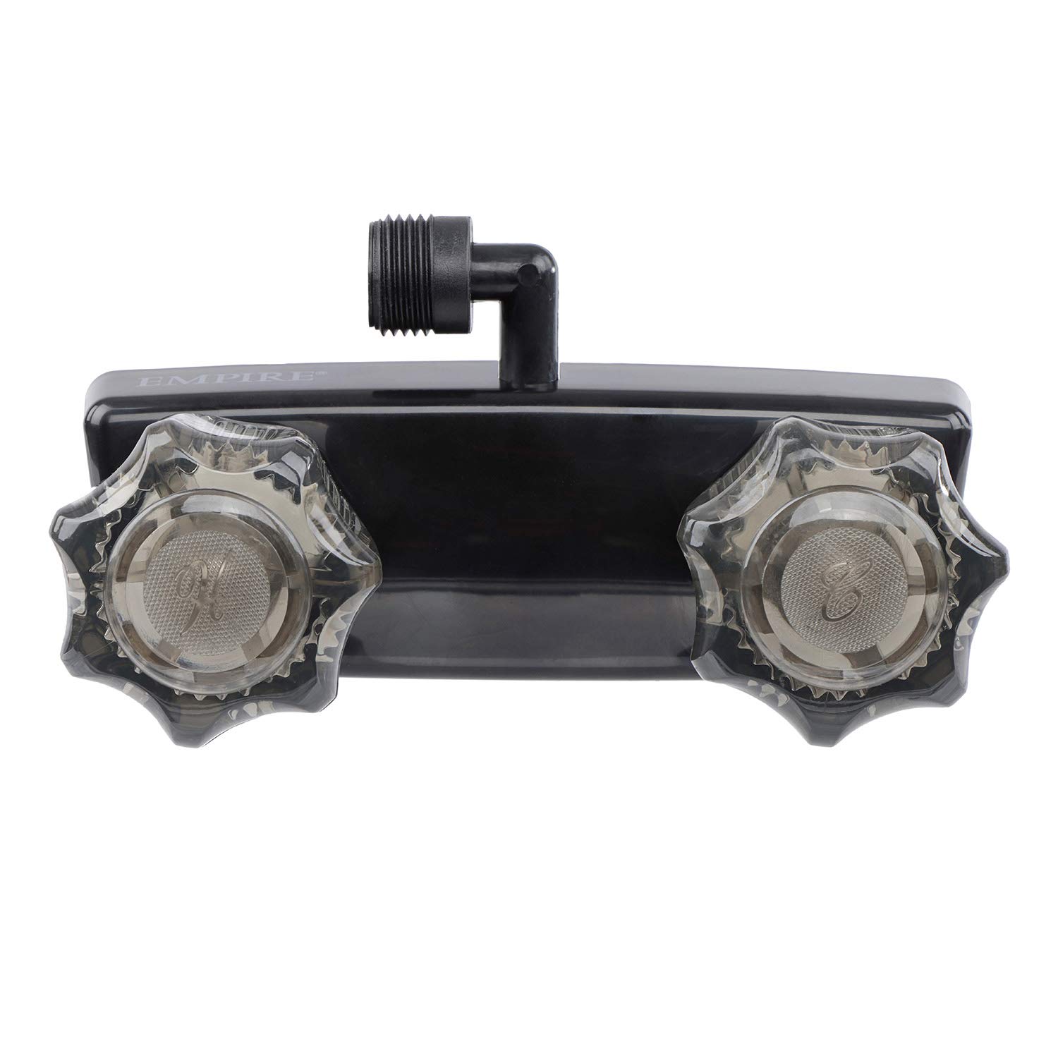 The Empire Brass Company U-YJW9053VBLK-A is a 4-inch RV shower valve specifically designed for recreational vehicle plumbing systems. This compact shower valve features a 90-degree configuration with a black D-spud connection, providing reliable water control in space-constrained RV bathroom installations.