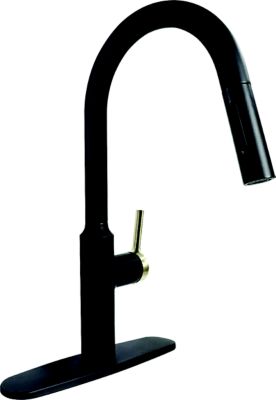 Valterra PF231780 8" Slimline Pull Down Kitchen Faucet Matte Black with Gold Handle