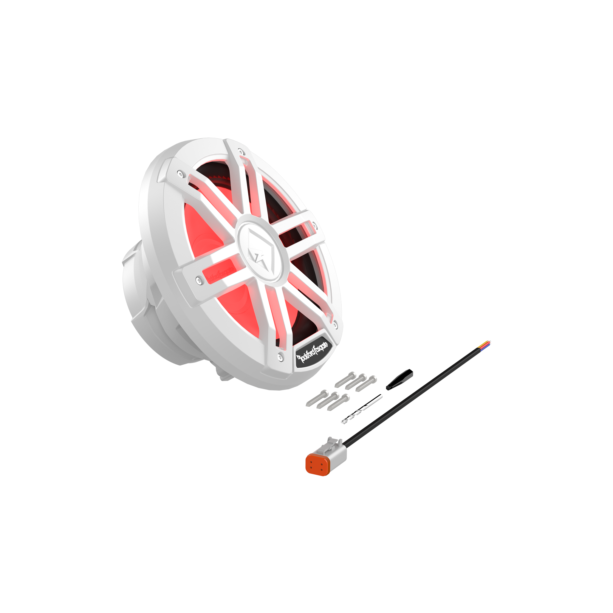 The Rockford Fosgate M1D4-8 is an 8-inch dual voice coil (DVC) marine subwoofer engineered to deliver powerful, accurate bass in harsh marine environments. This premium subwoofer features innovative Color Optix™ LED lighting technology that adds customizable illumination to your audio system, creating an impressive visual experience on the water.