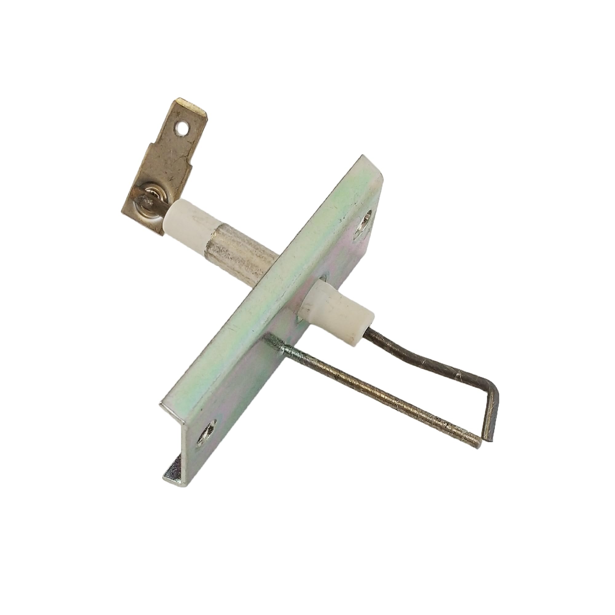 The electrode assembly receives high-voltage spark from the furnace control board to ignite the propane at the burner. Simultaneously, the integrated probe monitors flame presence and sends confirmation signals back to the control board, ensuring safe and reliable furnace operation.