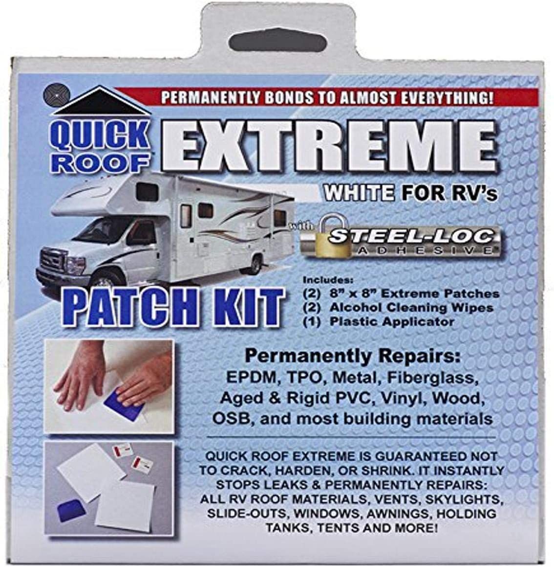 The Co-Fair Quick Roof Extreme Roof Repair Patch Kit is a professional-grade self-adhesive repair solution designed specifically for RV and building roof repairs. This emergency repair kit provides permanent, reliable repairs for a wide variety of roofing materials commonly found on recreational vehicles and structures.