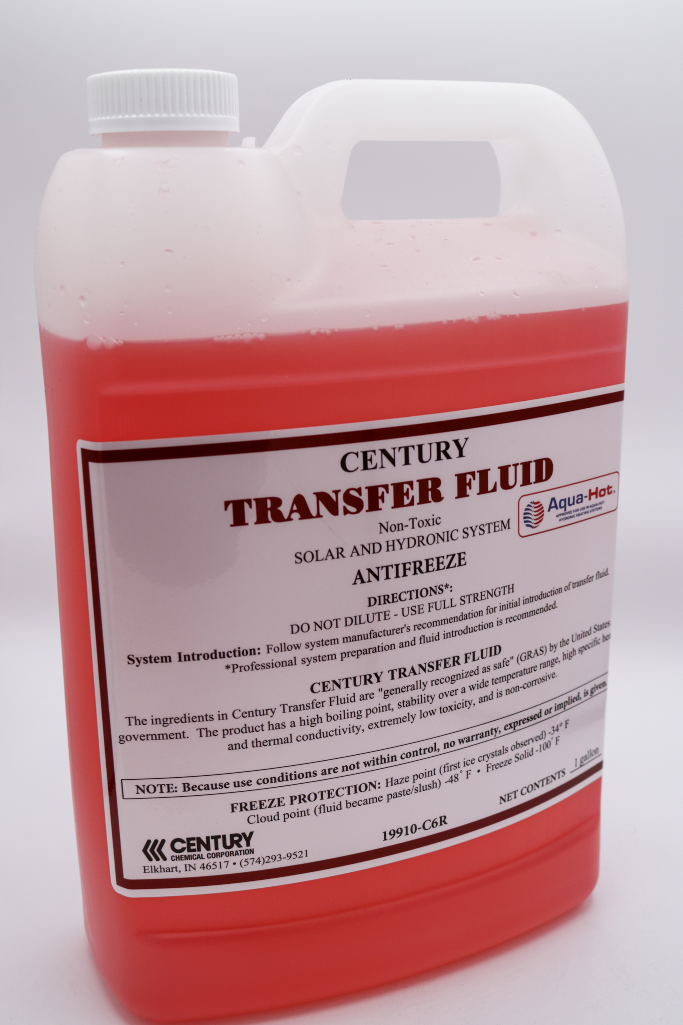Century Chemical 19910-C6R is a premium ready-to-use heat transfer fluid formulated with non-toxic propylene glycol and specialized corrosion inhibitors. This 1-gallon red-colored formula provides freeze protection down to -100°F and is specifically designed for use in hydronic heating systems including Aqua-Hot, Oasis, and Timberline S units.