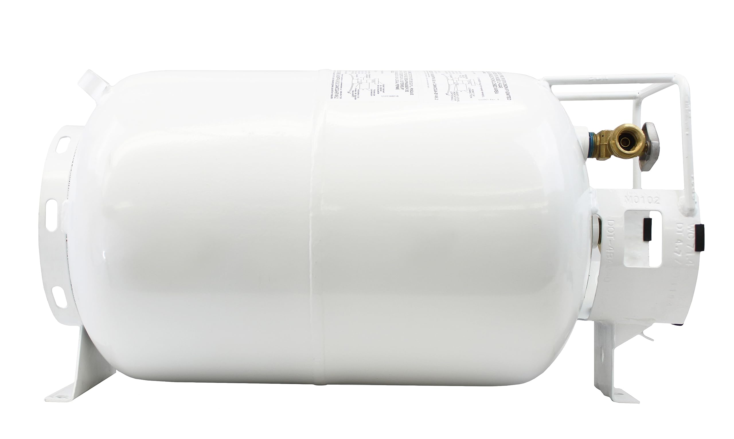 This horizontal cylinder is perfect for RV and camper installations where vertical tanks won't fit, and it provides a clean, professional appearance when integrated into fire pit tables and outdoor kitchen setups. The white finish resists rust and blends seamlessly with most outdoor décor.