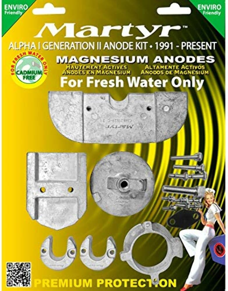 The CMP CMALPHAKITM is a complete magnesium anode kit designed specifically for MerCruiser Alpha One Generation II stern drives manufactured from 1991 to present. This comprehensive corrosion protection kit safeguards your expensive stern drive components from galvanic corrosion in freshwater applications.