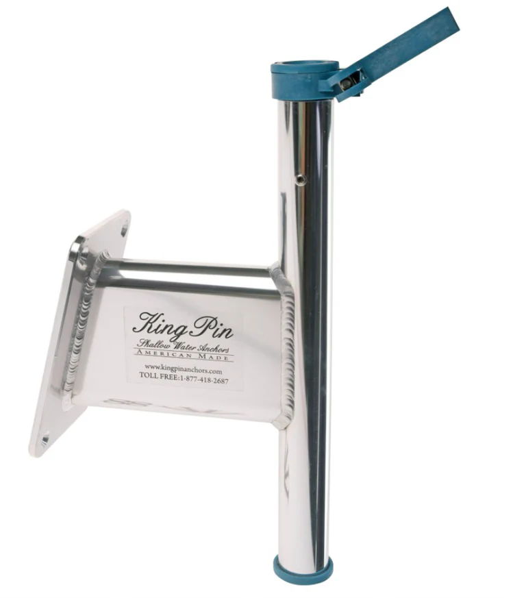 This transom mount bracket is compatible with Panther King Pin shallow water anchor poles and provides secure, reliable performance for fishing boats, pontoons, and other recreational watercraft. The quick-release feature makes it ideal for boaters who need to remove their anchor system for trailering or when docking.