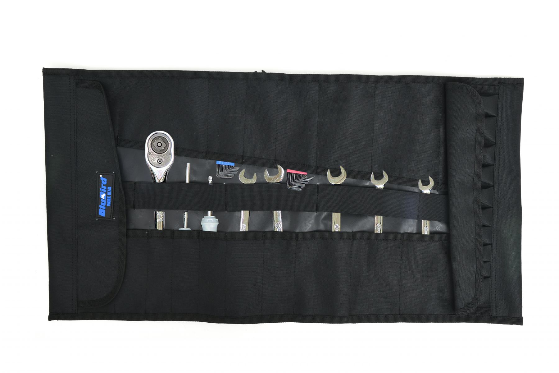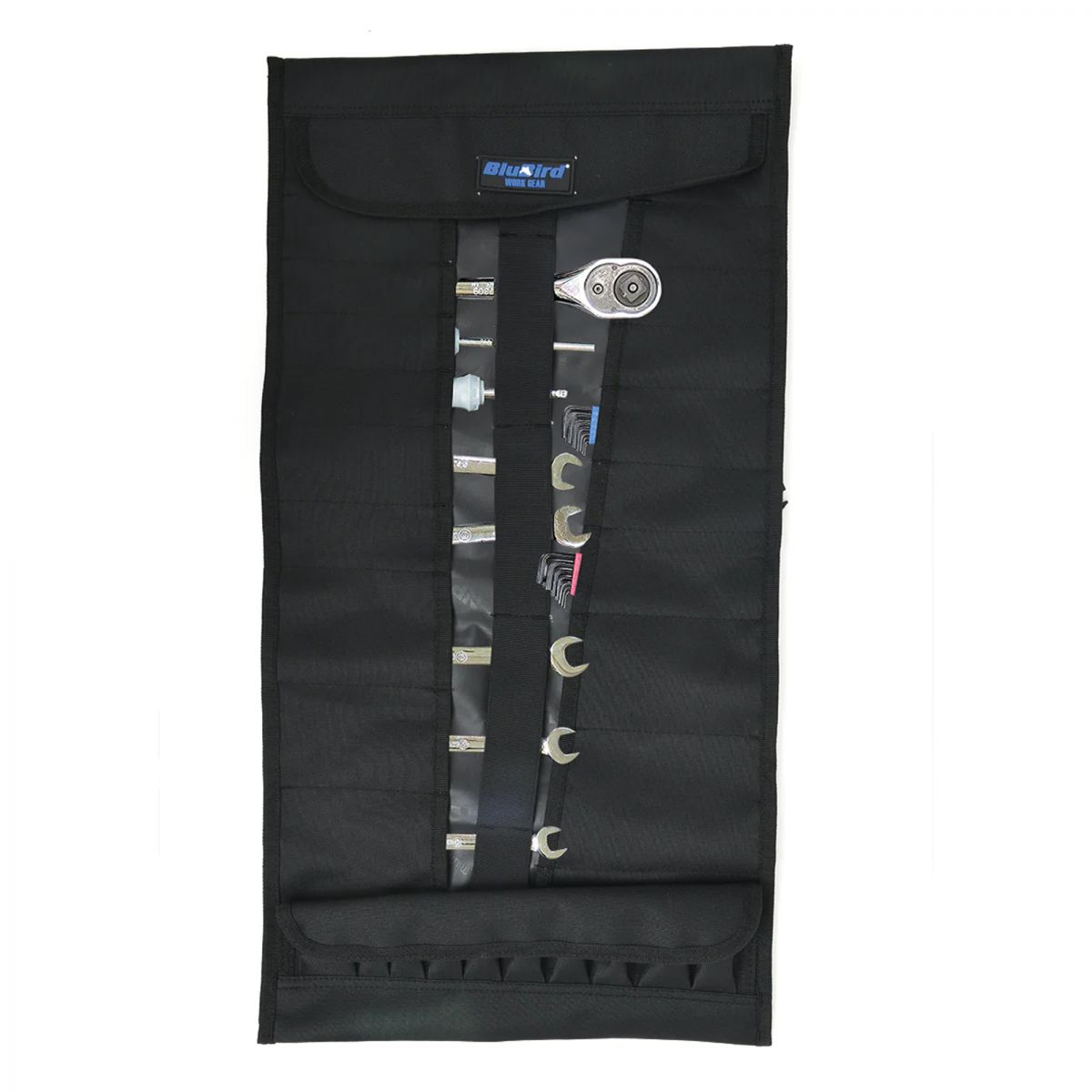 • Discover the BluBird Multi - pocket Tool Roll Organizer with 32 pockets. Made from durable 600D polyester, it offers easy access, extra padding, and an adjustable strap. Introducing the BluBird Work Gear Multi - pocket Tool Roll Organizer with 32 pockets, the ultimate solution for professionals needing a durable and organized tool storage system. This heavy - duty tool roll is made from high - quality 600D polyester and reinforced with heavy - duty stitching, ensuring it can withstand the rigors of any job site. With its compact design and top handle, this portable tool roll is perfect for contractors, carpenters, HVAC repairmen, plumbers, framers, electricians, and cable and audio - visual installers. Stay organized and efficient with this versatile tool roll bag. 1 - Year Limited Warranty Enjoy peace of mind with our 1 - year limited BluBird tool roll organizer warranty. Built to last, this durable tool roll is designed to provide reliable performance and long - lasting use. Whether you're on a job site or at home, our warranty ensures your investment is protected. Opens Wide for Easy Access The BluBird tool roll opens wide for easy access, making it simple to find the right tool when you need it. No more fumbling around in a cluttered bag�this tool roll organizer is designed to keep all your tools within reach, ensuring you can work more efficiently and effectively. Extra Padding for Support Experience maximum comfort with the extra padding included in our heavy - duty tool roll. This feature provides additional support, making it easier to carry your tools without straining your shoulders or back. Ideal for professionals who need to transport their tools frequently, this padded tool roll ensures a comfortable and hassle - free experience. Adjustable Shoulder Strap The adjustable shoulder strap offers customizable comfort and convenience. Whether you prefer to carry your tool roll bag over your shoulder or by hand, the adjustable strap allows you to find the perfect fit. This versatile design ensures you can transport your tools with ease, no matter where the job takes you. 22 Pockets and 10 Socket Holders Stay organized with 22 pockets specifically designed to hold wrenches, screwdrivers, pliers, Allen wrenches, and more. Additionally, the 10 socket holders keep all your sockets in place, preventing them from getting lost or mixed up. This multi - pocket tool roll ensures that every tool has its place, making it easy to stay organized and efficient on the job. Crafted from 600D polyester, this tool roll bag is both durable and resilient, standing up to the toughest conditions. The quick - open buckles add an extra layer of convenience, allowing you to access your tools quickly and easily. Whether you need a rugged tool roll for a demanding job site or a compact tool organizer for your home workshop, the BluBird Work Gear Multi - pocket Tool Roll Organizer is the perfect choice.