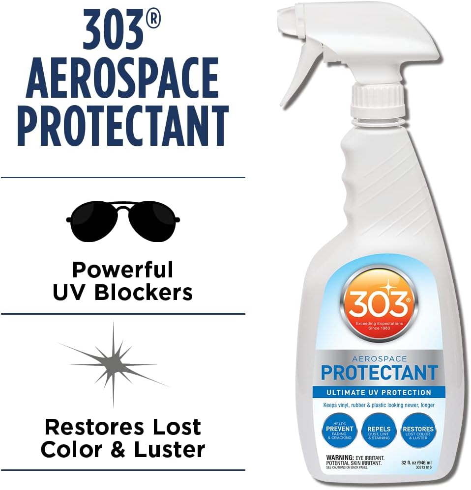 Ideal for protecting boat covers, Bimini tops, outdoor cushions, patio furniture, awnings, tents, backpacks, jackets, and virtually any fabric surface exposed to the elements. 303 Fabric Guard restores factory-level protection and helps fabrics shed water while resisting oil-based and water-based stains.