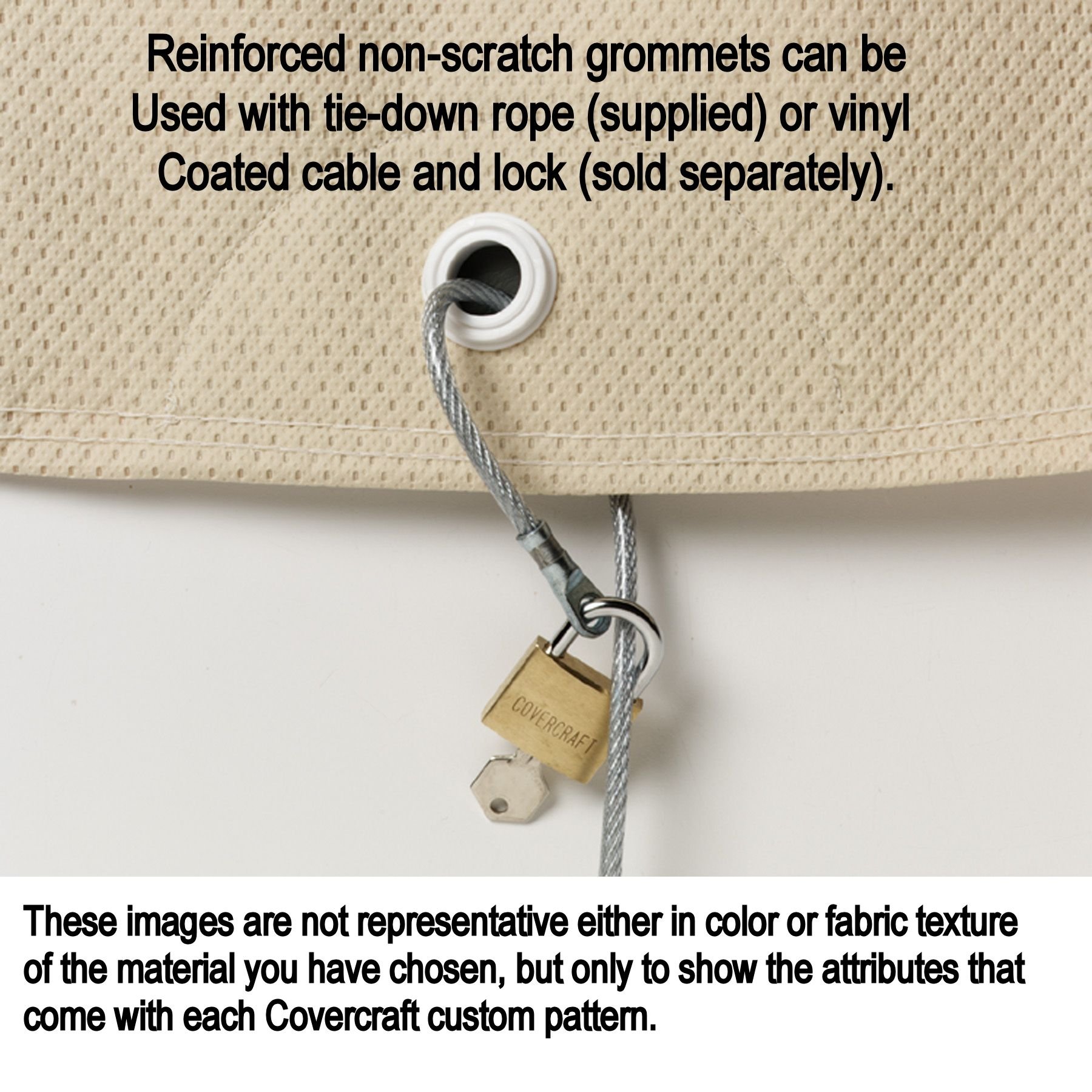 • Elasticated borders and non-scratch grommets for secure installation