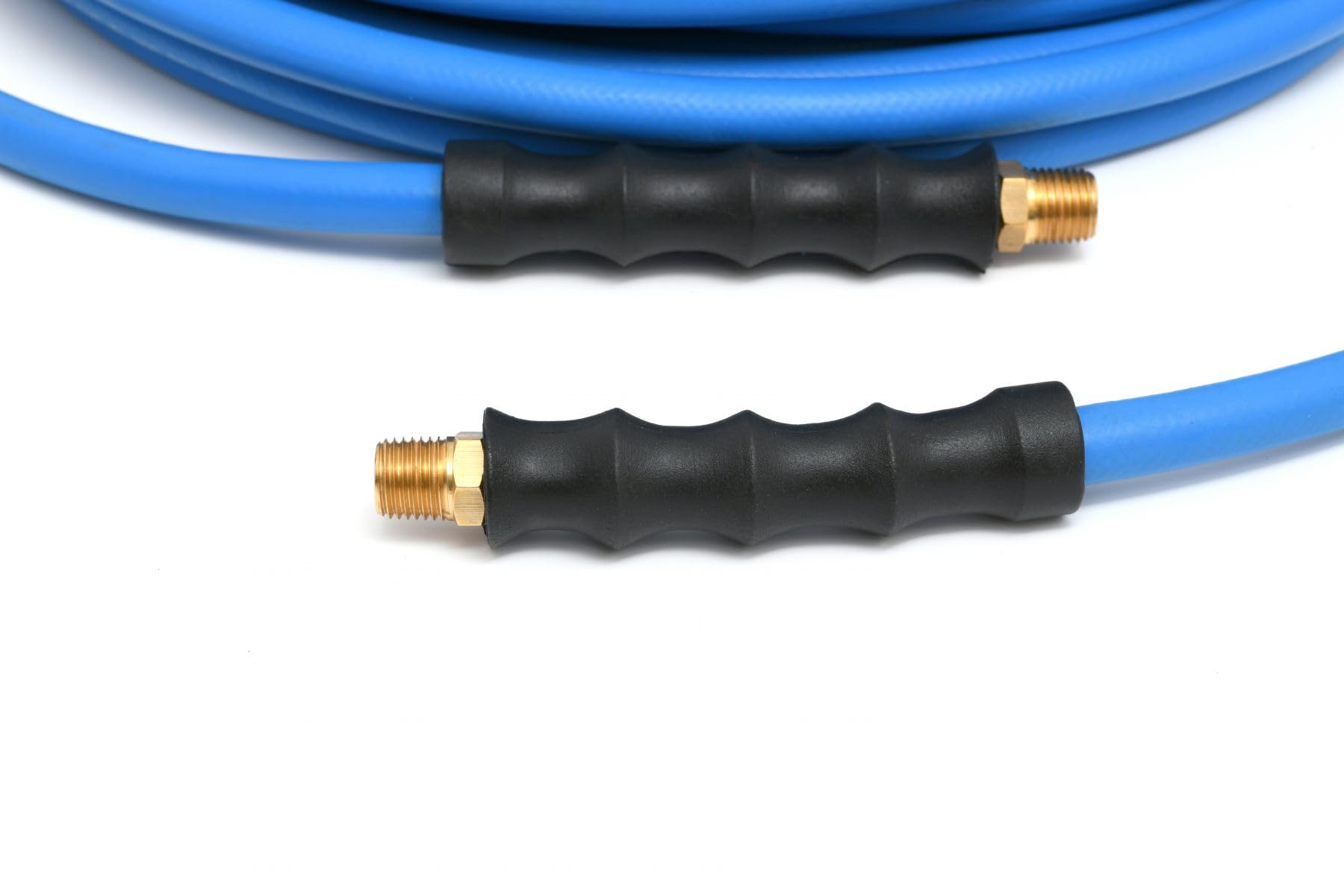 This 1/2" inner diameter hose provides excellent airflow for air tools, tire inflation, blow guns, and other pneumatic equipment. The solid brass fittings ensure leak-free operation and compatibility with standard air compressor quick-connect systems.