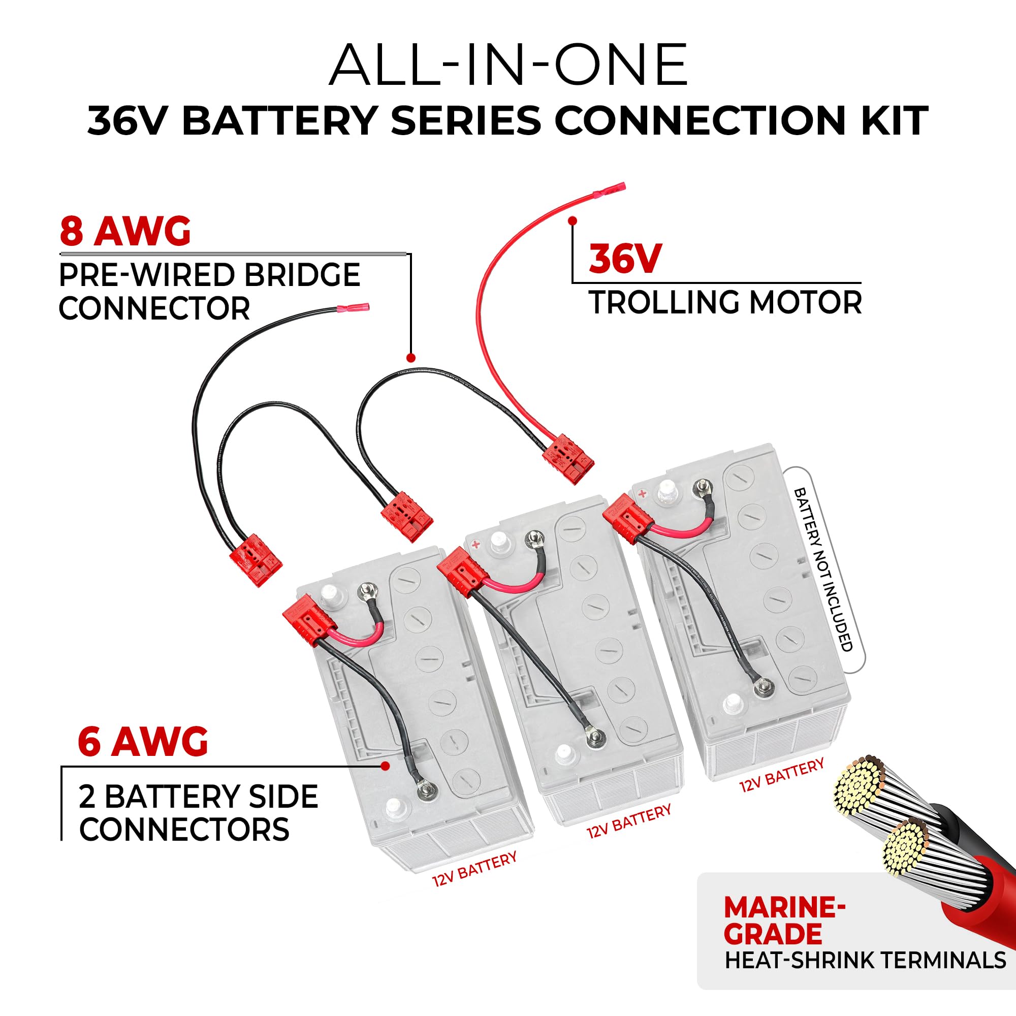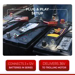 The Connect-Ease RCE36VBK is a plug-and-play 36-volt trolling motor connection system designed for serious anglers who demand reliable, tool-free battery management in their boats. This patented system simplifies the complex task of properly connecting three 12-volt marine batteries in series to power high-output 36V trolling motors.