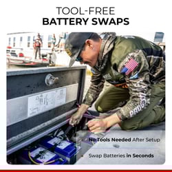 • Tool-free installation allows battery removal and replacement in seconds