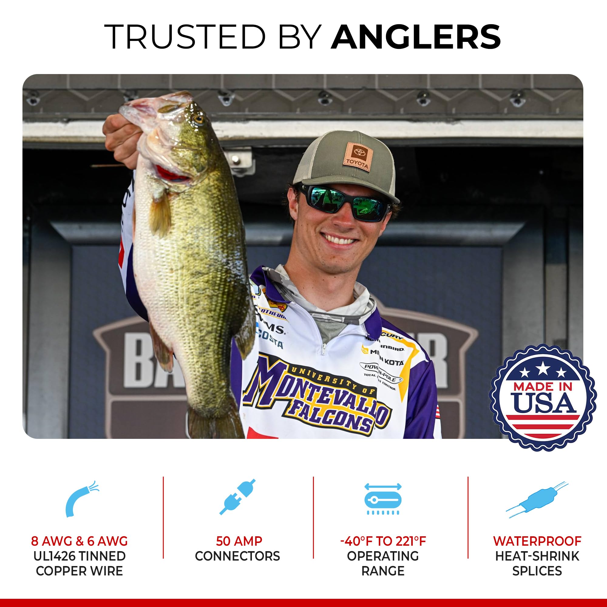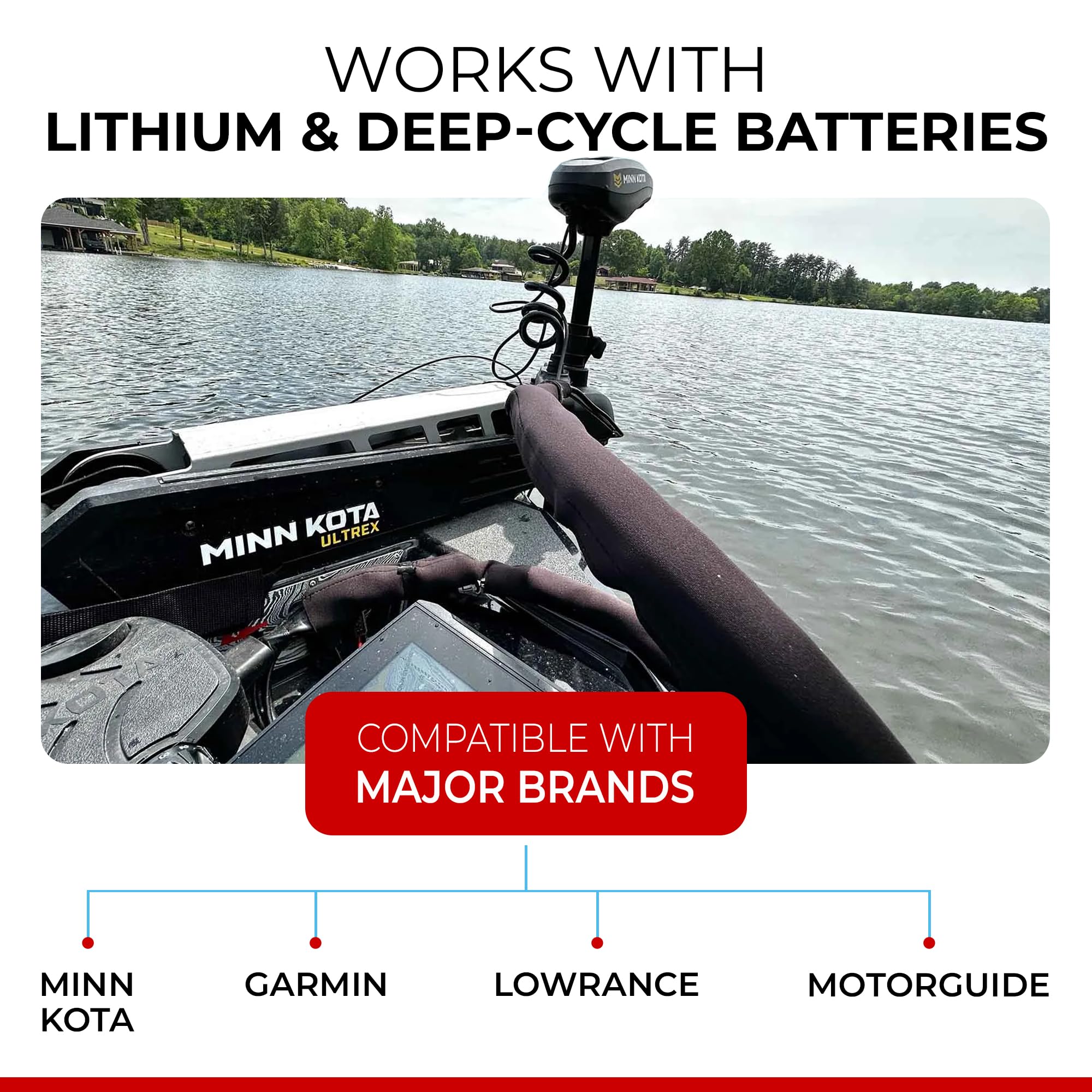 • Corrosion-free connections ensure consistent voltage delivery for optimal trolling motor performance
