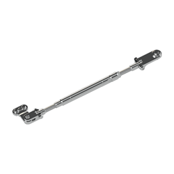 The Uflex A96 M/Y-29 is an adjustable single cylinder tie bar designed for twin outboard engine configurations with Mercury and Yamaha engines. This heavy-duty marine steering component accommodates engine center distances ranging from 26 inches (660.4 mm) to 29 inches (736.6 mm), making it suitable for a variety of twin outboard installations.