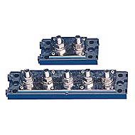 The NewMar BB-5 is a heavy-duty bus bar assembly rated for 500 amps, ideal for use as a DC ground tie point or positive distribution bus in marine, RV, and automotive electrical systems. This professional-grade component features a 1/4 inch thick copper bar with five 5/16 inch studs spaced on 1 inch centers, providing robust common connection points for large gauge wire distribution.