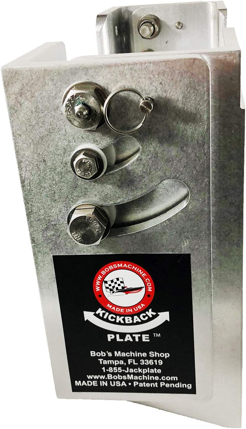 The Bob's Machine Kick-Back Jac Plate, also known as a "Stump Jumper," is a manual kick-up jack plate designed for shallow water navigation and obstacle avoidance. This innovative plate provides a 45-degree tilt-up capability for outboard motors up to 115 HP, allowing your motor to kick up when encountering underwater obstructions like stumps, rocks, or sandbars.