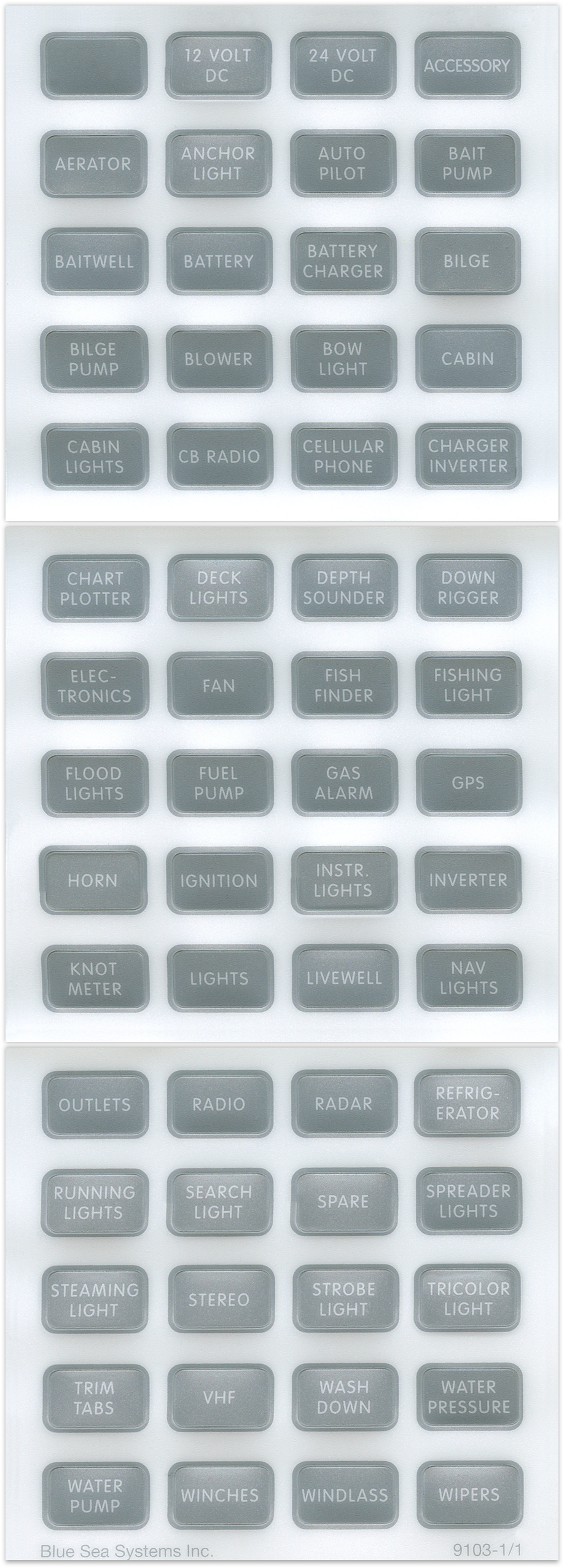 Blue Sea Systems 8217-BSS DC H2O Compact Panel Label Kit Gray