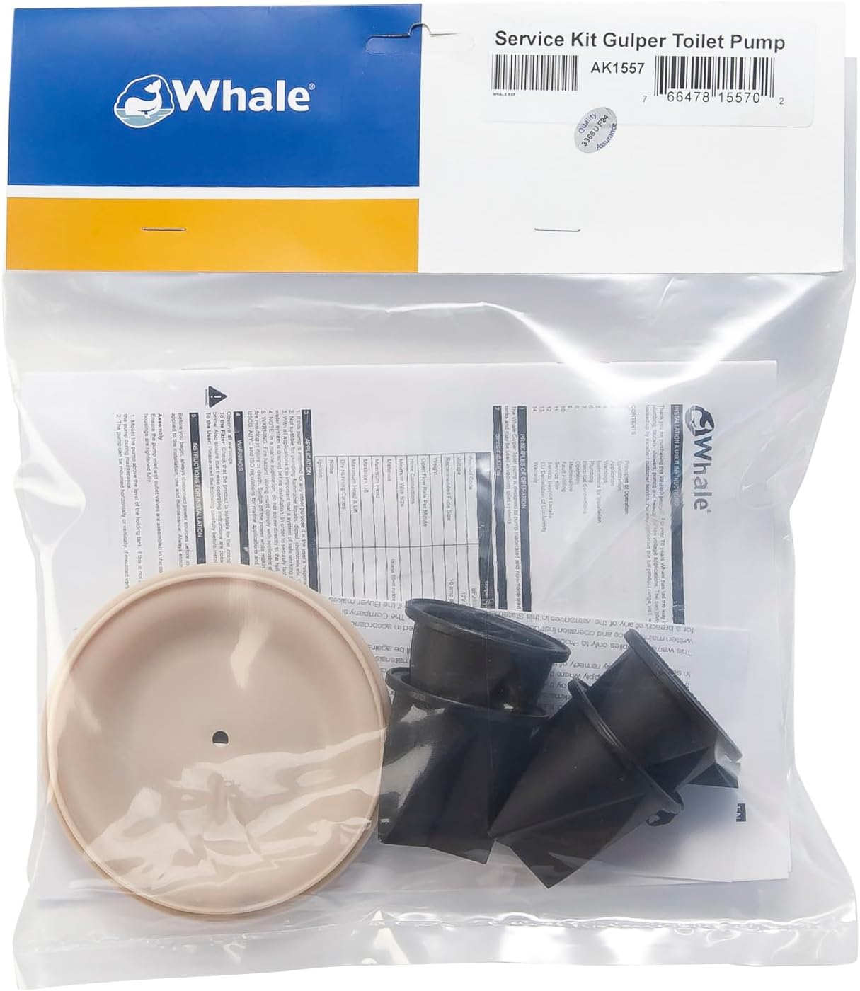 The Whale Water Systems AK1557 is a complete service kit designed for Whale Gulper manual bilge pumps. This comprehensive maintenance kit contains all the essential components needed to restore your pump to optimal performance, including a replacement diaphragm and valve assemblies.