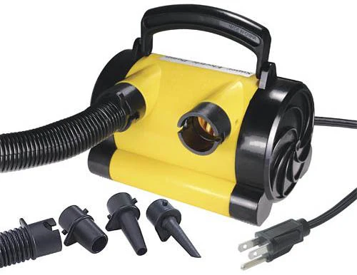 The Sportsstuff AHP-120 is a 120-volt canister style air pump that inflates and deflates towables, pools, air mattresses and beach toys. The accordion-style hose locks onto the pump and valve fittings, eliminating annoying disconnections.