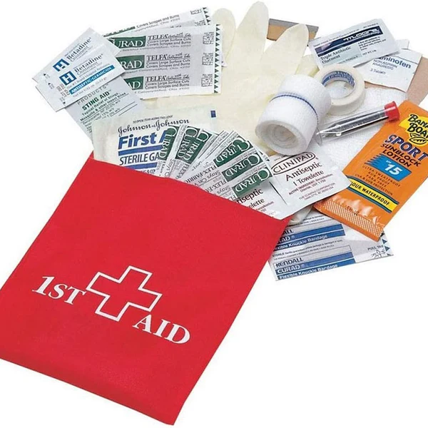 • Assorted fabric bandages including 2" x 3" TEFLA pads, knuckle bandages, and various sizes