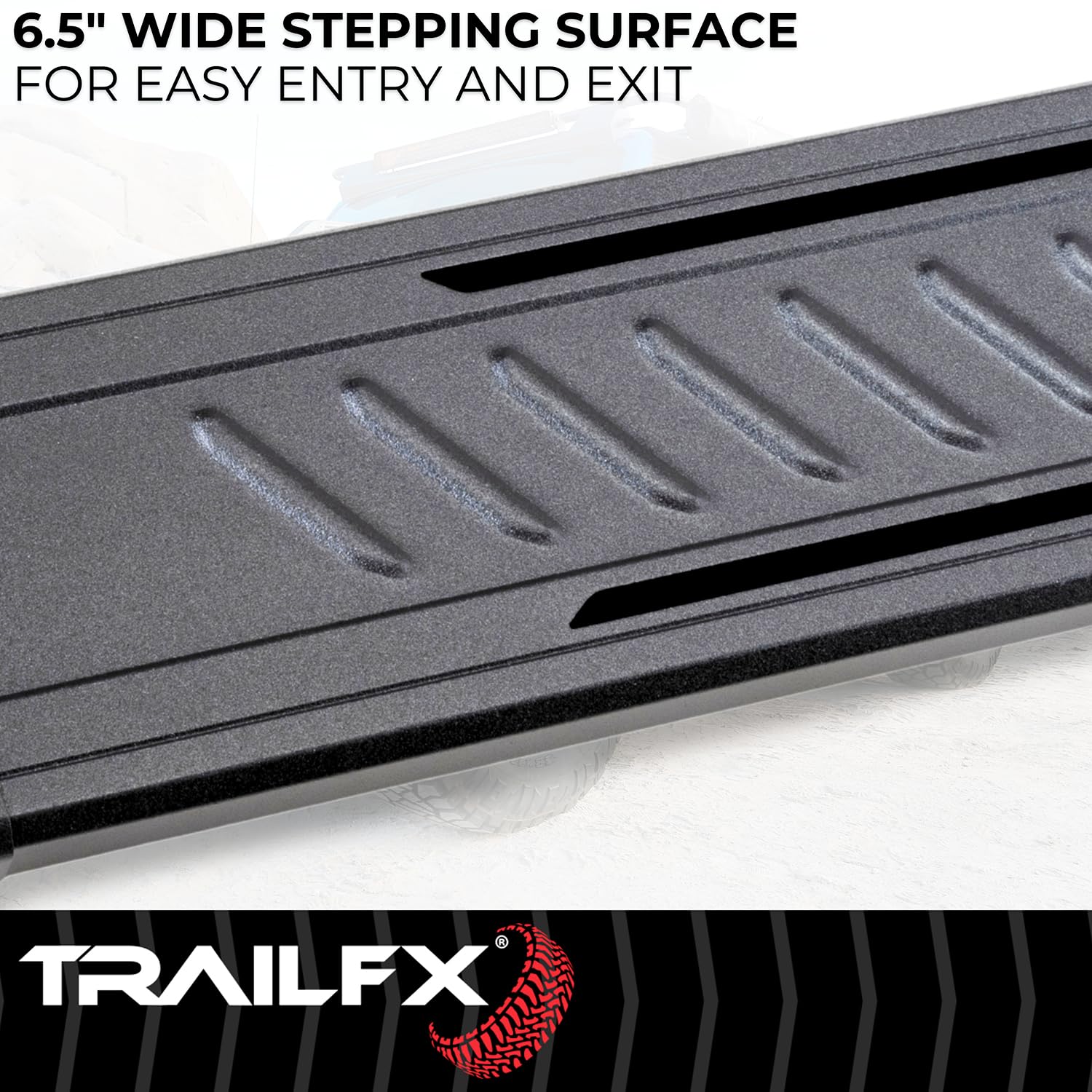 The TrailFX AL6018B aluminum running boards provide a durable and stylish step solution for 2024-2025 Toyota Tacoma Double Cab trucks. These rocker panel-mounted boards feature a generous 6.5-inch wide step area that delivers confident footing when entering and exiting your vehicle.