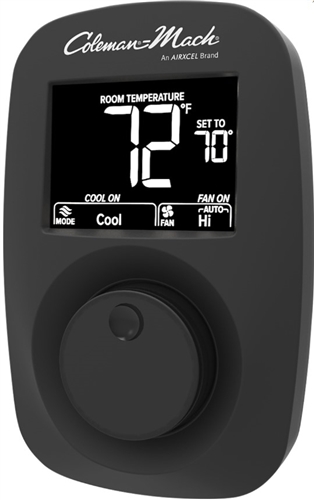 The Coleman-Mach 9420A382 is a digital wall thermostat designed specifically for RV heat pump air conditioning systems and gas furnace control. This thermostat features an easy-to-read black background with white LCD digital display, providing clear visibility in all lighting conditions.