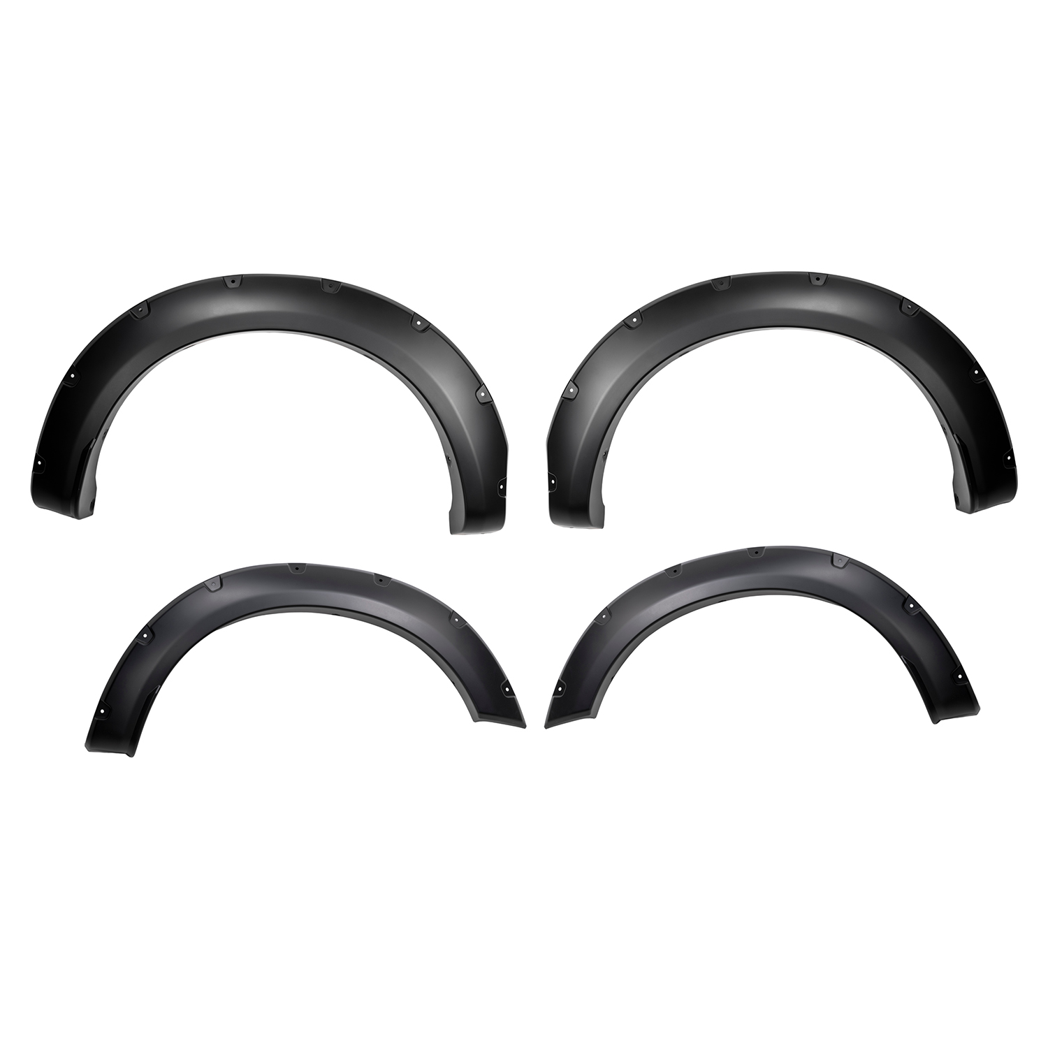 Constructed from high-quality injection-molded polypropylene, these fender flares resist cracking, fading, and warping in harsh weather conditions. The smooth finish can be painted to match your truck's factory color or left black for a classic contrast look. Installation hardware and rivets are included for a complete bolt-on installation.