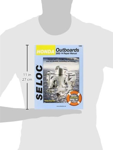 The Seloc 118-01202 marine repair manual provides comprehensive coverage for all Honda outboard engines from 2002 to 2014. This professional-grade service manual covers all 2.0-250 horsepower models, including 1-4 cylinder and V6 engines, as well as jet drive configurations.