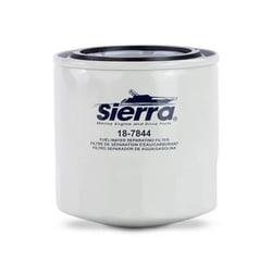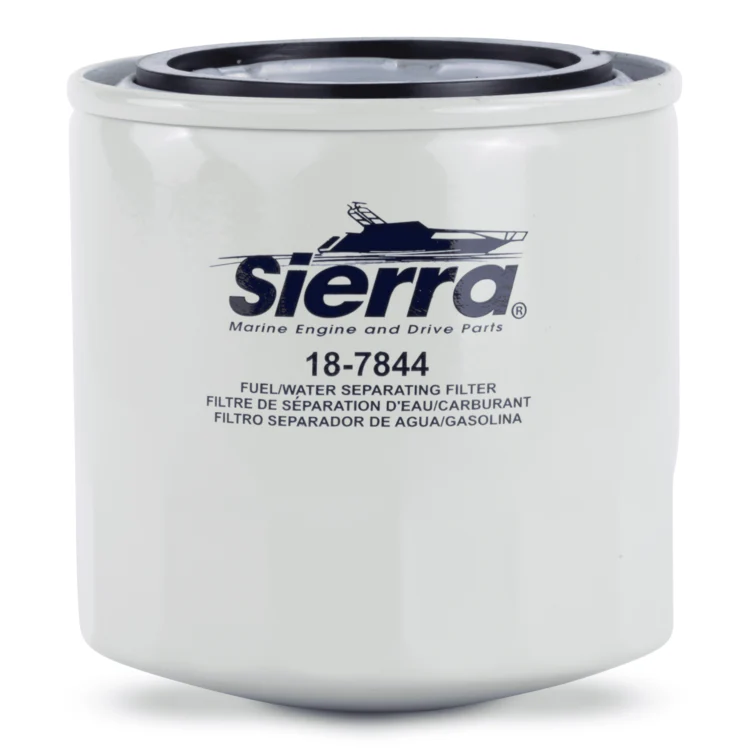 The Sierra 18-7844 is a short fuel water separator filter designed specifically for marine gasoline engines. This compact 3.875-inch filter features a 21 micron rating and is engineered to handle the challenges of modern ethanol-blended fuels commonly used in marine applications.