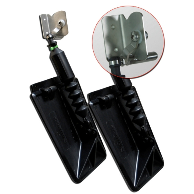 These trim tabs feature fully automatic operation with no operator adjustment required while underway. The nitrogen gas actuators provide lift at the stern by holding the trim plates down during acceleration, with the amount of lift determined by the actuator load rating and initial plate adjustment. The internal valve system dampens plate movement to eliminate reactions to minor water pressure variances, delivering smooth and level performance at all speeds.