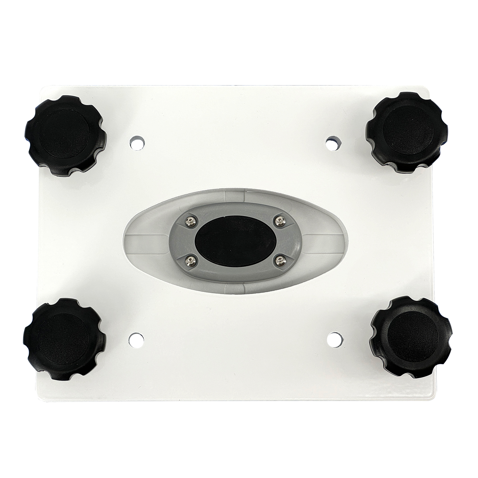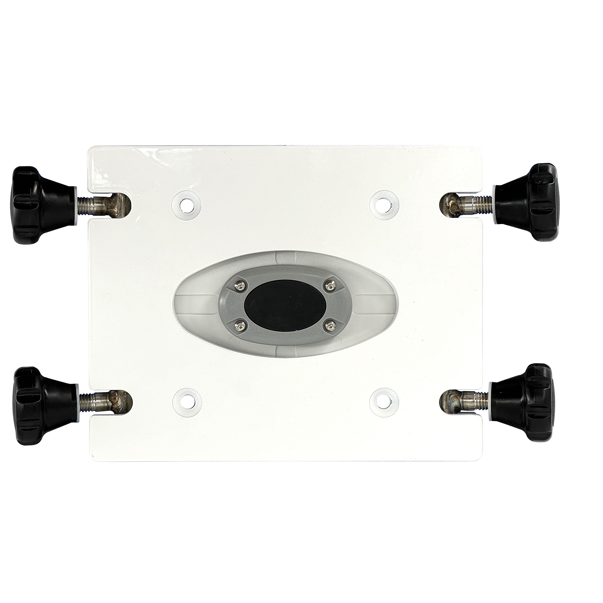 This removable base system is ideal for boat owners who need to frequently service electronics, secure equipment during storage, or swap out seasonal gear. The captive knob design means the black knobs stay attached to the base even when loosened, preventing lost parts in marine environments.