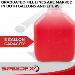 The SPEEDFX 8730 is a versatile 3-gallon utility jug designed for safe and convenient fuel, oil, or fluid transport and storage. Constructed from durable high-density plastic, this utility jug features a bright red color for easy visibility and identification.