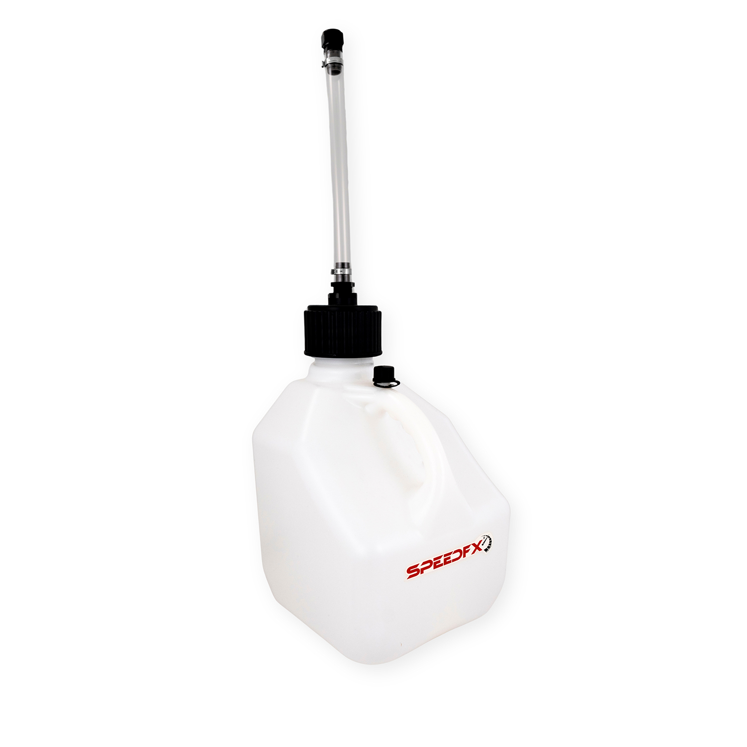 The SPEEDFX 8731 is a durable 3-gallon utility jug designed for safe and convenient fluid storage and transfer. Constructed from heavy-duty white plastic, this versatile jug is ideal for fueling applications in racing, powersports, marine, and off-road environments.