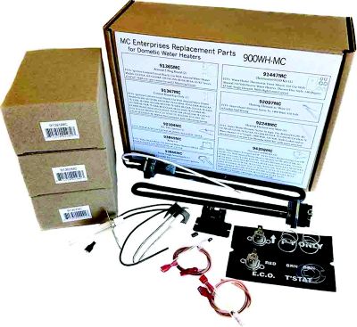 The MC 900WH-MC is a comprehensive replacement parts kit designed for Dometic brand RV water heaters. This professional-grade kit provides all the essential components needed for servicing and repairing Dometic water heater systems in recreational vehicles.