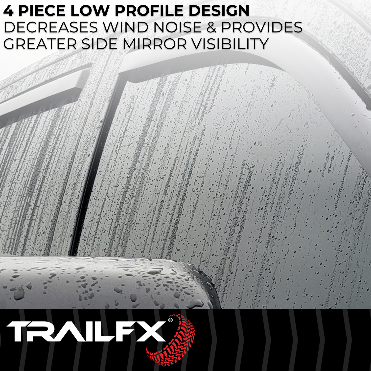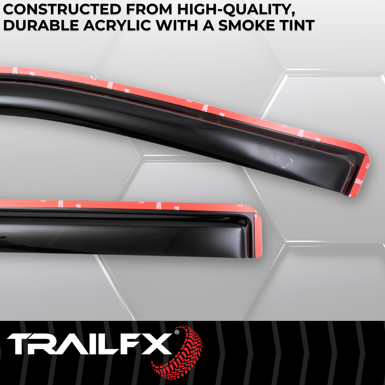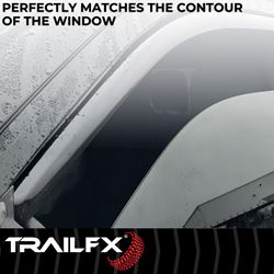 TrailFX window visors are precision-engineered from durable acrylic material that resists cracking and fading. The in-channel mounting design creates a factory-installed look while providing secure attachment that won't damage your vehicle's finish.