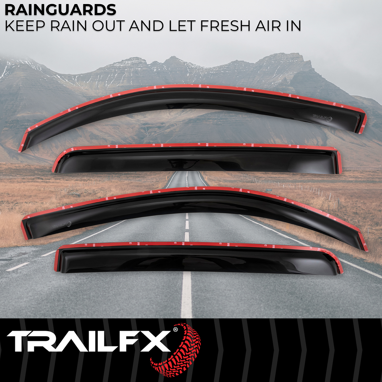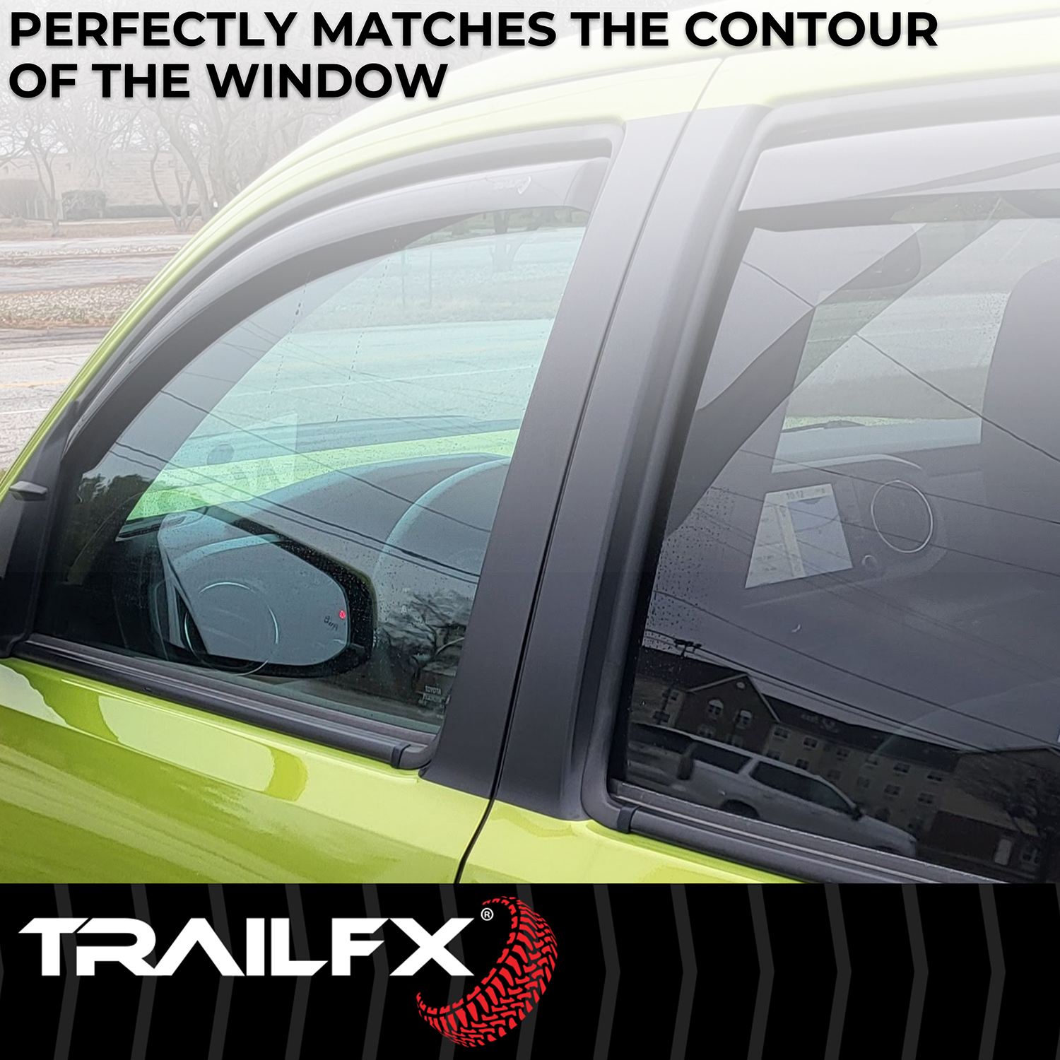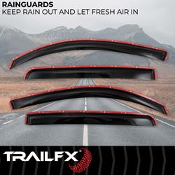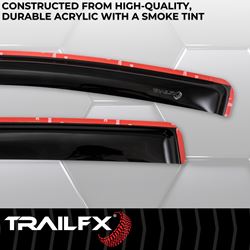 TrailFX window vents are engineered from high-quality acrylic material that resists cracking and fading, ensuring long-lasting performance in all weather conditions. The in-channel mounting system provides superior hold and a clean, integrated look compared to traditional stick-on deflectors.